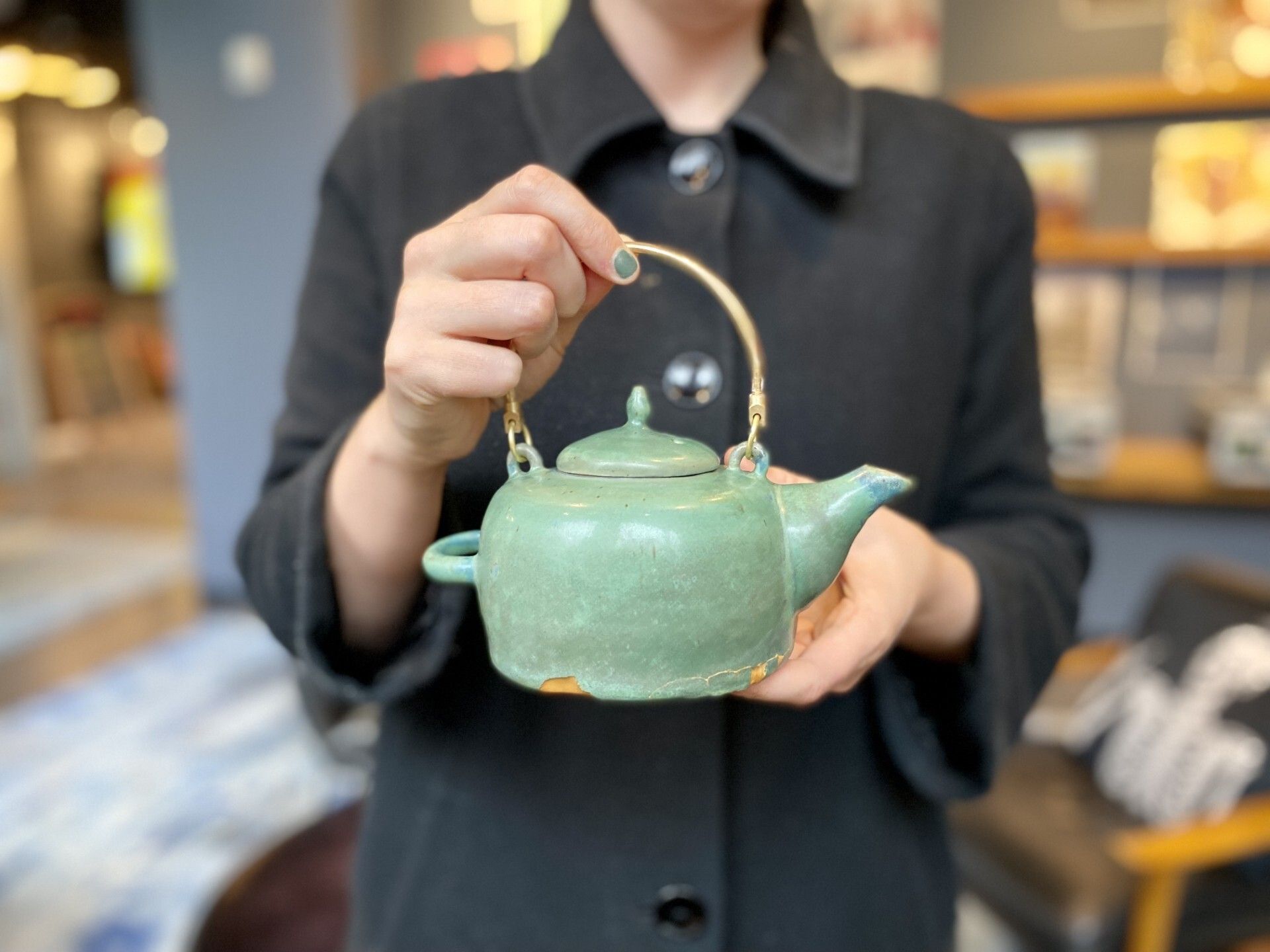 I had the pleasure of making this teapot as a Hallowedding gift for a dear friend. I took my time with it, thinking carefully about shape and color at each step of the process. Despite my consideration, it came out of its second firing with a chipped base — a result of glaze dripping inside the kiln. I was only disappointed for a minute until I realized it was a perfect opportunity for kintsugi — a Japanese technique for visible repairs (literally ‘golden joinery’). I think it’s all the more beautiful for its rough start!